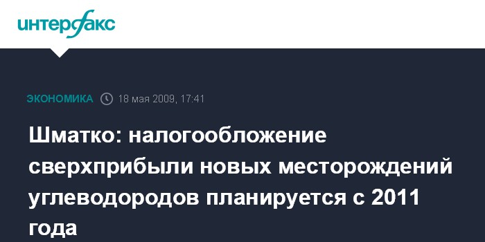 Шматко: налогообложение сверхприбыли новых месторождений углеводородов планируется с 2011 года
