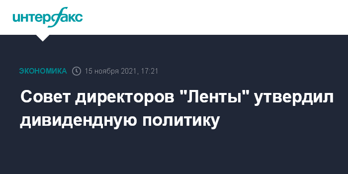 Москва. 15 ноября. INTERFAX.RU - Совет директоров МКПАО "Лента" утвердил положение о дивидендной политике, сообщил ритейлер.