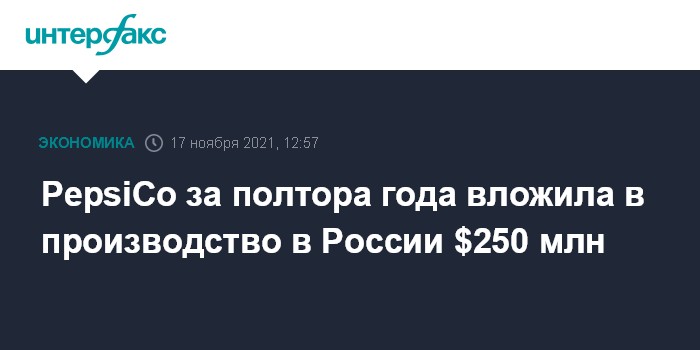 PepsiCo за полтора года вложила в производство в России $250 млн