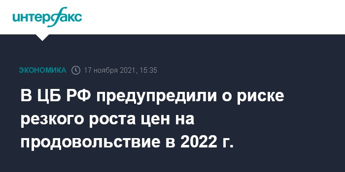 В ЦБ РФ предупредили о риске резкого роста цен на продовольствие в 2022 г.