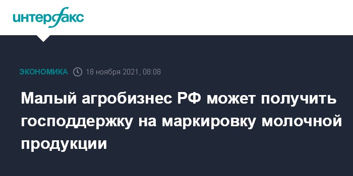 Москва. 18 ноября. INTERFAX.RU - Предприятия малого агробизнеса РФ, занимающиеся производством и (или) переработкой молочной продукции, могут получить господдержку на ее маркировку.