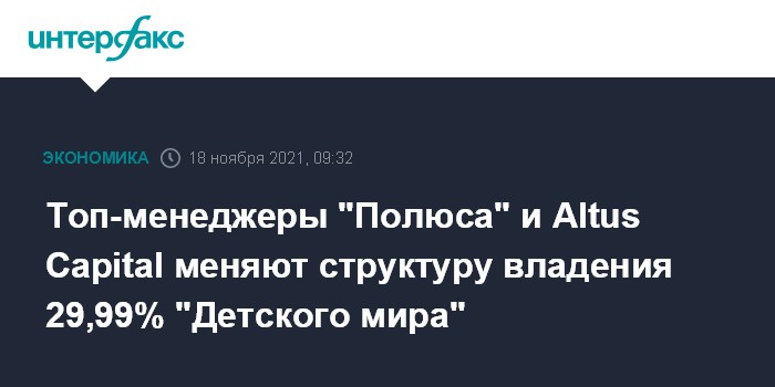 Топ-менеджеры "Полюса" и Altus Capital меняют структуру владения 29,99% "Детского мира"