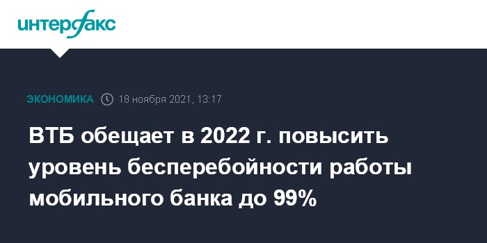 ВТБ обещает в 2022 г. повысить уровень бесперебойности работы мобильного банка до 99%