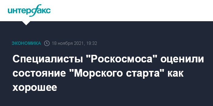 Москва. 18 ноября. INTERFAX.RU - Специалисты "Роскосмоса" провели оценку технического состояния космодрома "Морской старт", оно оценивается как хорошее, сообщили в пресс-службе госкорпорации. Состояние и перспективы использования платформы обсуждали на совещании в "Роскосмосе".