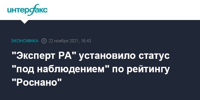 "Эксперт РА" установило статус "под наблюдением" по рейтингу "Роснано"