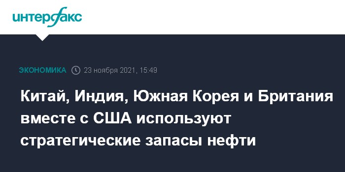 Китай, Индия, Южная Корея и Британия вместе с США используют стратегические запасы нефти