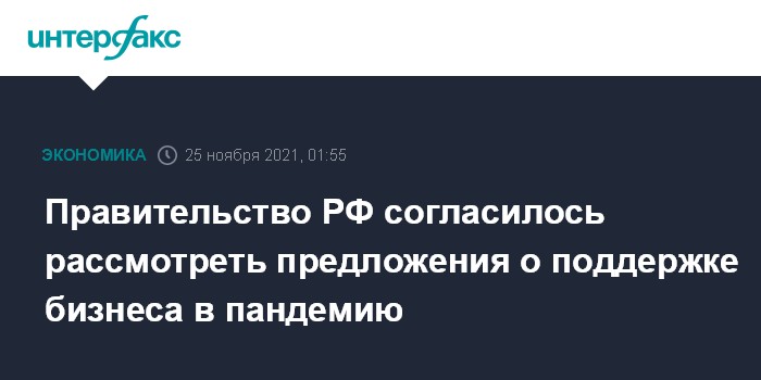 Правительство РФ согласилось рассмотреть предложения о поддержке бизнеса в пандемию