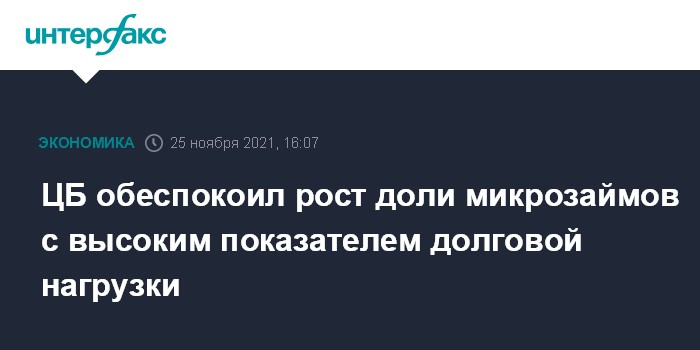Москва. 25 ноября. INTERFAX.RU - Банк России изучает возможность повышения коэффициентов риска по микрозаймам с высоким показателем долговой нагрузки (ПДН) и займам на сумму до 10 тыс. рублей, говорится в обзоре финансовой стабильности, опубликованном на сайте регулятора.