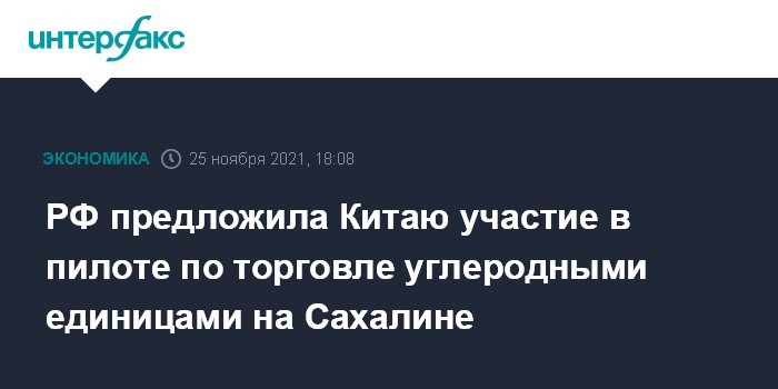 РФ предложила Китаю участие в пилоте по торговле углеродными единицами на Сахалине