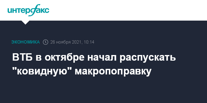ВТБ в октябре начал распускать "ковидную" макропоправку