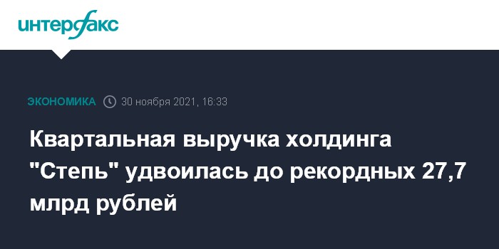 Квартальная выручка холдинга "Степь" удвоилась до рекордных 27,7 млрд рублей