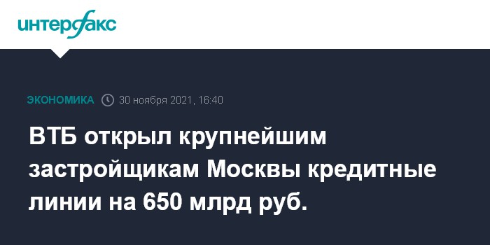 ВТБ открыл крупнейшим застройщикам Москвы кредитные линии на 650 млрд руб.