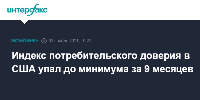 Москва. 30 ноября. INTERFAX.RU - Индекс потребительского доверия в США в ноябре упал до 109,5 пункта сравнению с пересмотренными 111,6 пункта месяцем ранее, сообщила исследовательская организация Conference Board, которая рассчитывает этот индикатор.