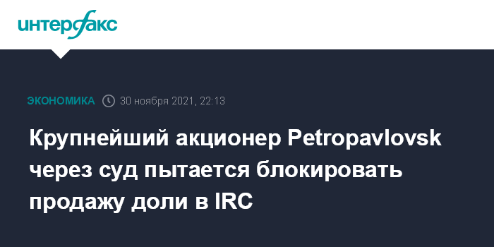 Крупнейший акционер Petropavlovsk через суд пытается блокировать продажу доли в IRC
