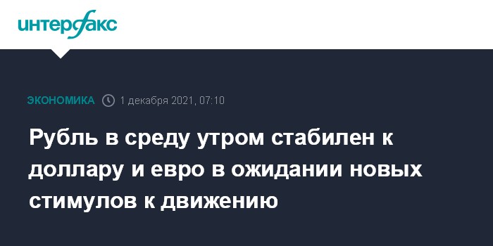 По мнению экспертов "Интерфакс-ЦЭА", рубль незначительно меняется к доллару и евро на старте торгов 1 декабря в ожидании новых стимулов. Прежде всего, инвесторы продолжают анализировать риски распространения нового штамма коронавируса, получившего название "омикрон". В то же время, стабилизации курса нацвалюты способствовала и коррекция цен на нефть вверх, после падения накануне.