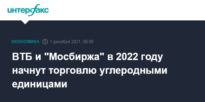 Москва. 1 декабря. INTERFAX.RU - ВТБ в 2022 году планирует вместе с "Московской биржей" начать торговлю углеродными единицами, заявил президенту Владимиру Путину глава банка Андрей Костин.