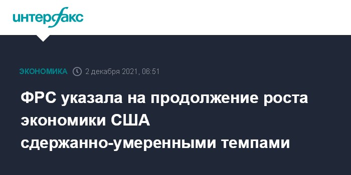 ФРС указала на продолжение роста экономики США сдержанно-умеренными темпами