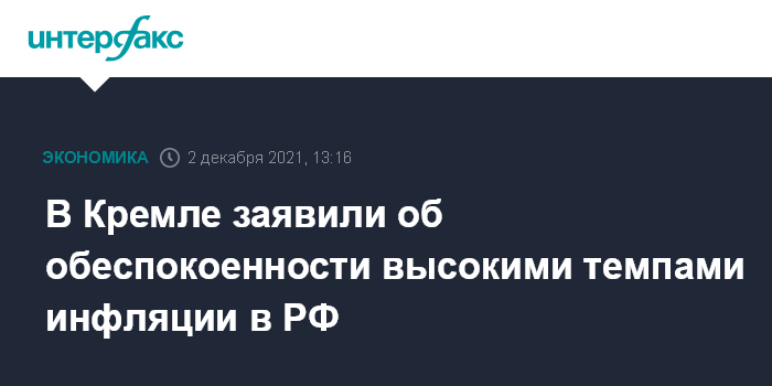 Москва. 2 декабря. INTERFAX.RU - В Кремле заявляют об обеспокоенности высокими темпами инфляции в РФ, но подчеркивают, что благодаря принимаемым правительством мерам удается избежать ее резких скачков.