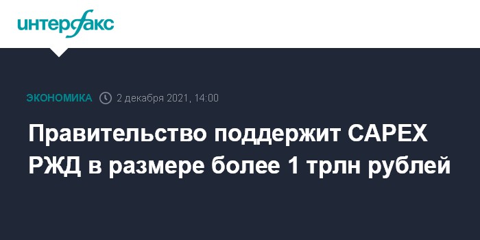 Правительство поддержит CAPEX РЖД в размере более 1 трлн рублей