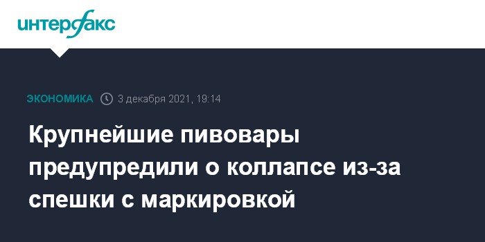 Москва. 3 декабря. INTERFAX.RU - Введение в России обязательной маркировки пива с сентября 2022 года может привести к коллапсу на рынке, считают в Ассоциации производителей пива (АПП), которая объединяет трех крупнейших игроков российского рынка - AB InBev Efes, Carlsberg Group ("Балтика") и Heineken.