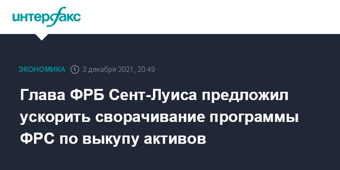 Глава ФРБ Сент-Луиса сказал, что "FOMC на предстоящих заседаниях, возможно, пожелает рассмотреть возможность более быстрого сворачивания" программы выкупа активов.