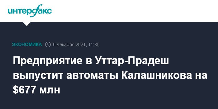 Предприятие в Уттар-Прадеш выпустит автоматы Калашникова на $677 млн