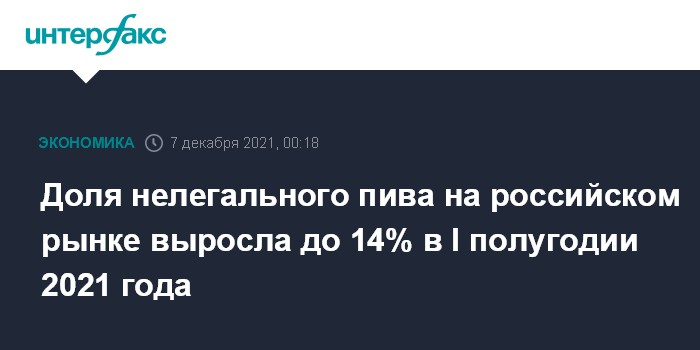 Согласно сообщению, в 2020 году доля нелегального оборота на рынке пива снизилась до 5,2% из-за антиковидных ограничений, которые затруднили производство и ввоз нелегальной продукции. В первом полугодии 2021 года доля "серого пива" на рынке резко выросла на фоне открытия границ.