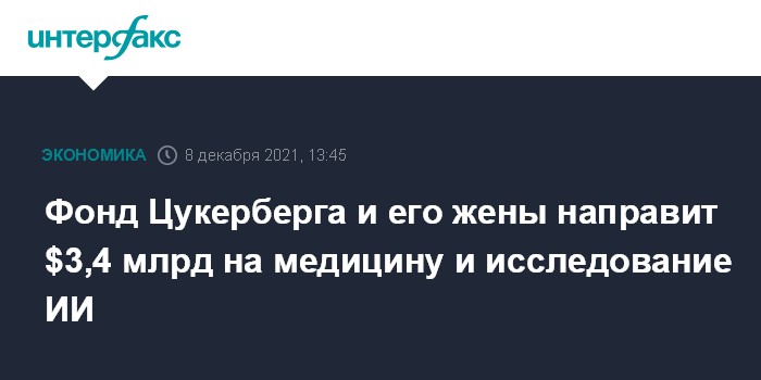 Москва. 8 декабря. INTERFAX.RU - Благотворительный фонд Chan Zuckerberg Initiative (CZI), основанный главой Meta Platforms (ранее Facebook) Марком Цукербергом и его женой Присциллой Чан, в ближайшие 10-15 лет вложит до $3,4 млрд в программы в сфере здравоохранения, сообщает MarketWatch со ссылкой на представителя фонда Джеффа МакГрегора.