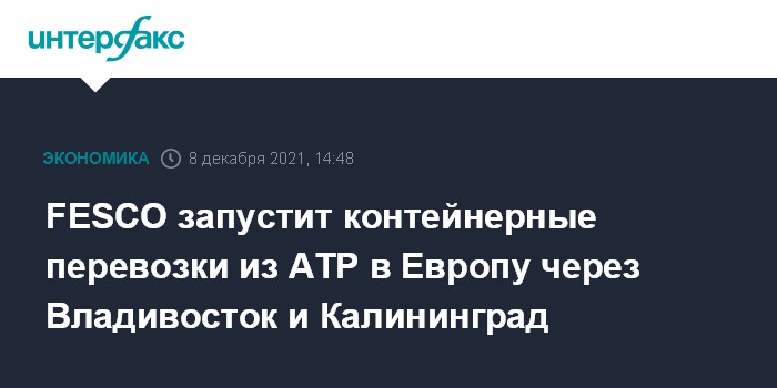 Москва. 8 декабря. INTERFAX.RU - Транспортная группа FESCO (базовая компания - ПАО "Дальневосточное морское пароходство", ДВМП) сообщила, что запускает регулярный интермодальный контейнерный сервис FESCO West Gate Bridge из стран Азиатско-Тихоокеанского региона (АТР) в порты Европы через Владивосток и Калининград.
