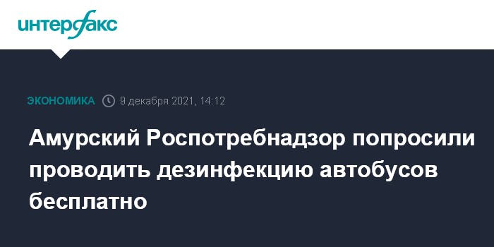 Москва. 9 декабря. INTERFAX.RU - Бизнес-омбудсмен Амурской области Борис Белобородов попросил Роспотребнадзор сделать бесплатной дезинфекцию пассажирского транспорта, которую это ведомство требует проводить ежедневно. Об этом обращении к главе ведомства Анне Поповой говорится на сайте уполномоченного.