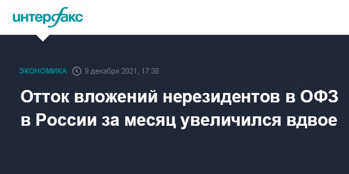 Москва. 9 декабря. INTERFAX.RU - Иностранные инвесторы в ноябре продолжили сокращать вложения в (облигации федерального займа) ОФЗ, говорится в комментарии Банка России по ликвидности банковского сектора.