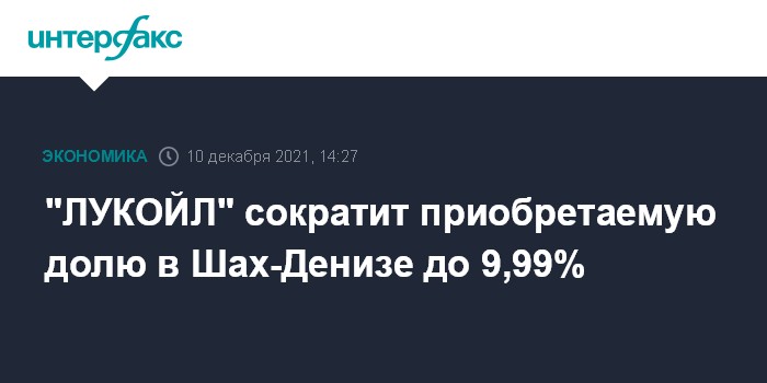 Москва. 10 декабря. INTERFAX.RU - "ЛУКОЙЛ" сообщил, что подписал изменения в соглашение о приобретении у Petronas доли в проекте Шах-Дениз (Азербайджан), заключенном в октябре 2021 года.