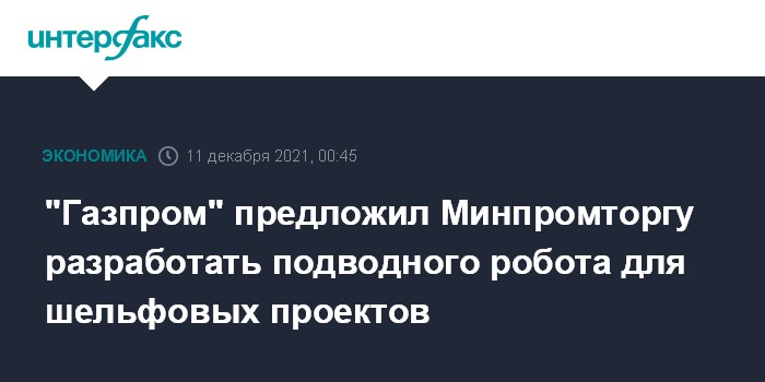 Москва. 11 декабря. INTERFAX.RU - ПАО "Газпром" считает создание подводной робототехники одним из приоритетных направлений импортозамещения в топливно-энергетическом комплексе России, сообщил заместитель председателя правления компании Виталий Маркелов в ходе совещания с вице-премьером РФ Юрием Борисовым.