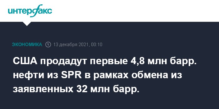 Компании, заинтересованные в покупке нефти из SPR, должны были подать заявки на участие в аукционах не позднее 6 декабря. Минэнерго распределит контракты среди участников аукционов до 14 декабря, а поставки по ним будут осуществляться в период с января по апрель 2022 года, сообщало ведомство, допуская что первые отгрузки могут начаться уже в конце декабря.