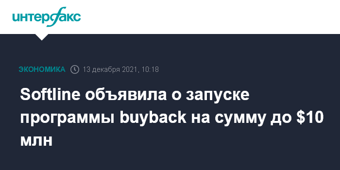 Москва. 13 декабря. INTERFAX.RU - Softline объявила о запуске программы выкупа акций на общую сумму до $10 млн. Максимальное количество GDR, выкупленных в рамках реализации программы, не превысит 18,3 млн, следует из сообщения компании.