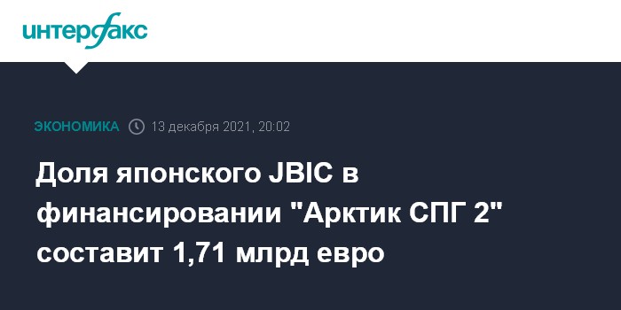 Ранее "Арктик СПГ 2" сообщал, что в общей сумме проектного финансирования в размере 9,5 млрд евро доля "финансовых институтов стран-участниц ОЭСР" составит "до 2,5 млрд евро, включая JBIC и других кредиторов, застрахованных экспортными кредитными агентствами". Таким образом, на японский банк приходится больше половины от этой части финансирования.