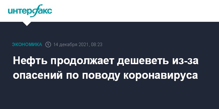 Москва. 14 декабря. INTERFAX.RU - Цены на нефть эталонных марок торгуются в минусе утром во вторник после снижения накануне, вызванного новой волной опасений по поводу распространения нового штамма коронавируса "омикрон".