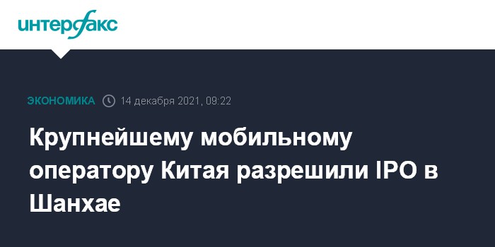 Крупнейшему мобильному оператору Китая разрешили IPO в Шанхае
