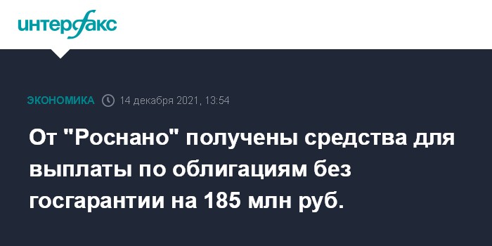 От "Роснано" получены средства для выплаты по облигациям без госгарантии на 185 млн руб.