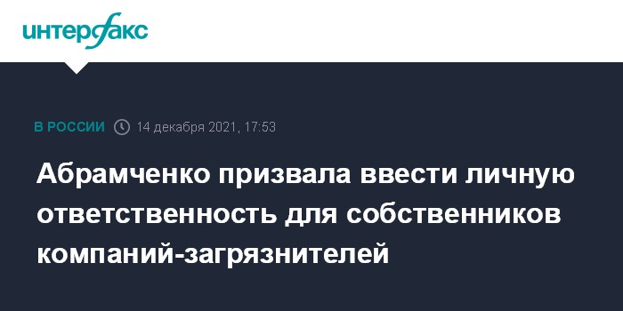 "Важным элементом реализации федерального проекта является соблюдение взятых на себя обязательств со стороны загрязнителей. Чтобы повысить ответственность предприятий в соответствии с вашим поручением министерством природных ресурсов был разработан и 1 декабря внесен в правительство законопроект, предусматривающий установление административной ответственности за отсутствие планов мероприятий по достижению квот выбросов или невыполнение мероприятий таких планов. Федеральными органами исполнительной власти предложен административный штраф за указанные правонарушения для юридических лиц до 100 тысяч рублей, а за повторное правонарушение - до 500 тысяч рублей. Считаю, что предложенный размер ответственности не приведет к достижению поставленной цели по снижению выбросов. Предприятиям будет проще заплатить такой штраф, чем заниматься модернизацией производства. Предлагаю предусмотреть в законодательстве ответственность для собственников компаний", - сказала Абрамченко.