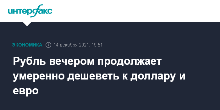 Как отмечают эксперты "Интерфакс-ЦЭА", рубль продолжает умеренно дешеветь к доллару и евро на вечерних торгах на фоне общемирового снижения интереса к риску. На участников рынков по-прежнему оказывает негативное влияние распространение нового штамма коронавируса "омикрон", поэтому сообщения о введении новых ограничений в различных странах способствуют усилению продаж на большинстве рынков мира.
