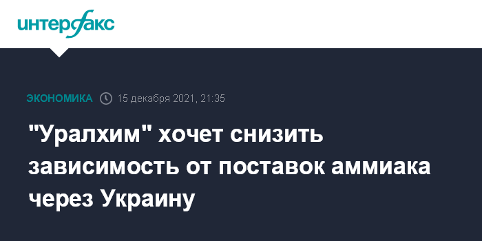 Москва. 15 декабря. INTERFAX.RU - "Уралхим" Дмитрия Мазепина, с конца ноября управляющий "Тольяттиазотом", озабочен стабильностью транзита аммиака с предприятия; компания также намерена снизить зависимость от поставок аммиака через Украину.