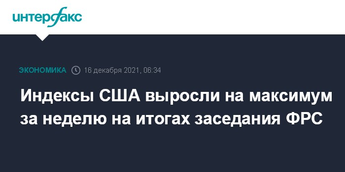 Москва. 16 декабря. INTERFAX.RU - Американские фондовые индексы в среду продемонстрировали самый существенный рост за последнюю неделю на итогах встречи руководства Федеральной резервной системы.