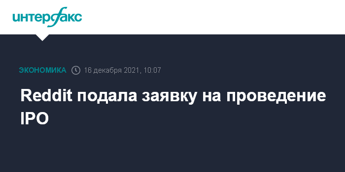 Москва. 16 декабря. INTERFAX.RU - Американская Reddit Inc., владелец одноименного интернет-портала, конфиденциально подала заявку на проведение IPO.