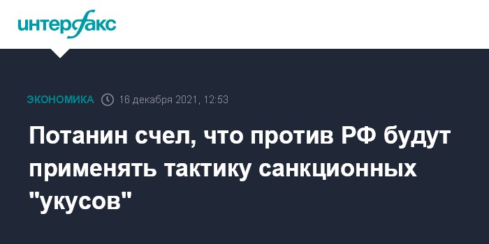 Москва. 16 декабря. INTERFAX.RU - Санкционная угроза для российской экономики реализуется в тактике "отдельных укусов и постепенного отжимания", но даже такой вид давления несет существенные риски, заявил владелец "Интерроса" и президент "Норникеля" Владимир Потанин в интервью телеканалу "Россия 24".