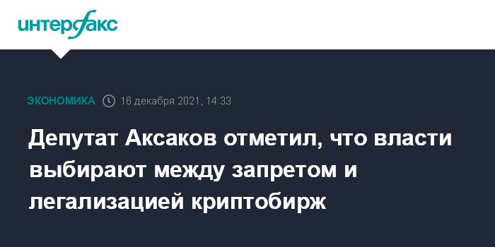 Москва. 16 декабря. INTERFAX.RU - Во власти сейчас обсуждается два диаметрально противоположных подхода к регулированию в России криптовалют - от полного запрета до легализации бирж, в течение 2022 года нужно будет определиться с выбором, заявил на пресс-конференции председатель думского комитета по финансовому рынку Анатолий Аксаков.