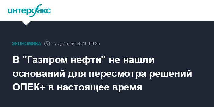 В "Газпром нефти" не нашли оснований для пересмотра решений ОПЕК+ в настоящее время
