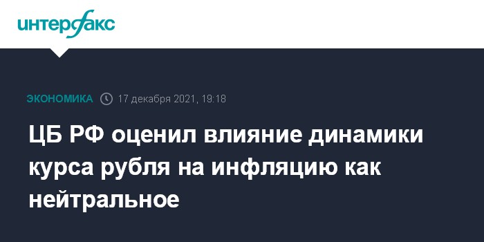 Москва. 17 декабря. INTERFAX.RU - Банк России с учетом лагов переноса колебаний курса рубля в потребительские цены оценивает их вклад в текущую ценовую динамику в целом как нейтральный, говорится в комментарии ЦБ по инфляции.
