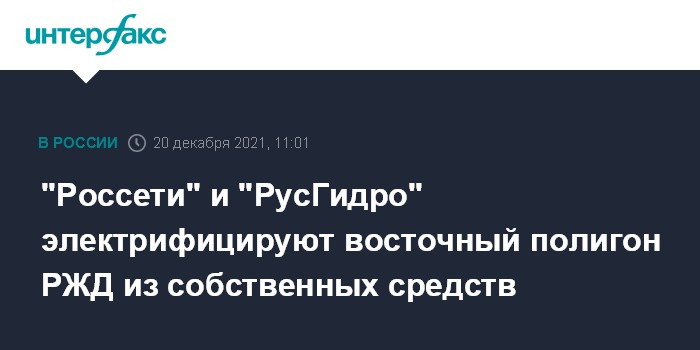 "Россети" и "РусГидро" электрифицируют восточный полигон РЖД из собственных средств