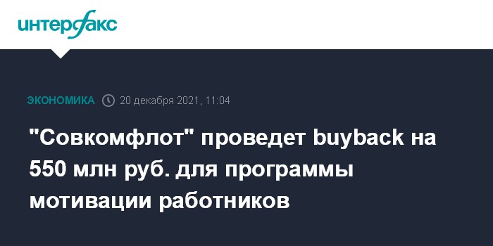 "Совкомфлот" проведет buyback на 550 млн руб. для программы мотивации работников